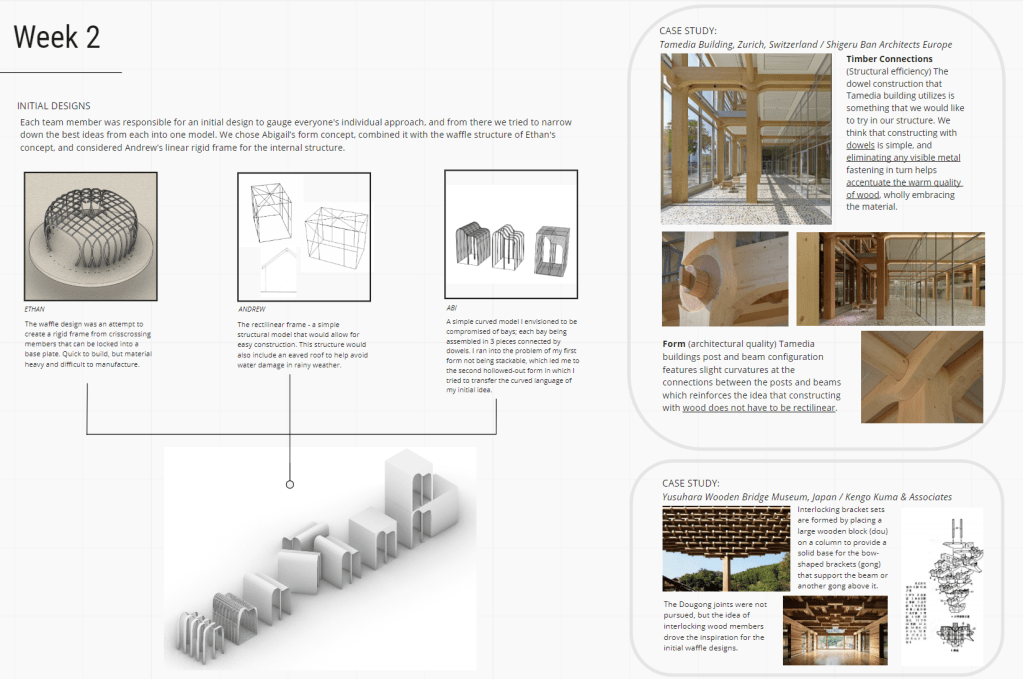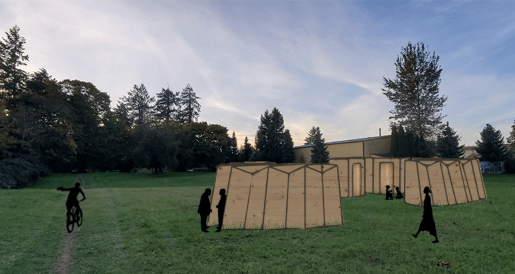 A community created for refugees who have been affected by a natural disaster. This community will focus on fostering a sense of safety and privacy for individuals facing troubling times. Residents of this community will not only experience the warmth of their temporary homes, but also become a part of an integrated environment with opportunities for interaction with others. This community was created with an emphasis on sustainable practices, and all buildings will have been created of primarily wood materials. Throughout the community, there will be space for residences of various configurations and sizes will to best suit user needs.