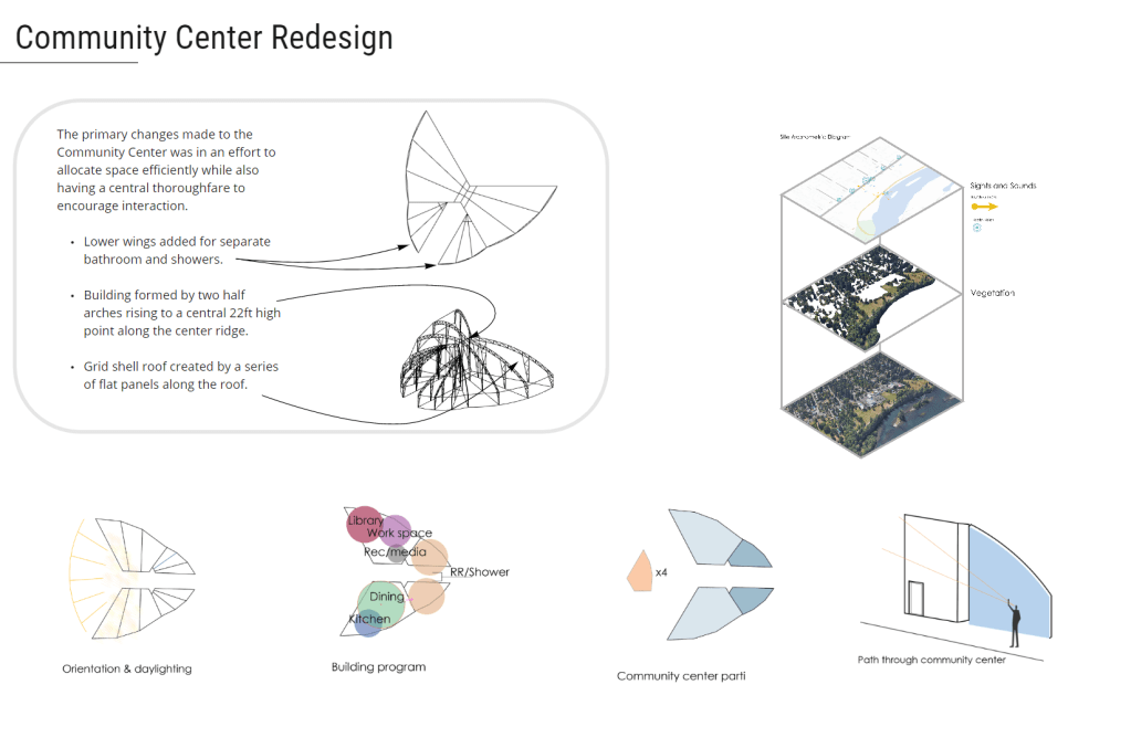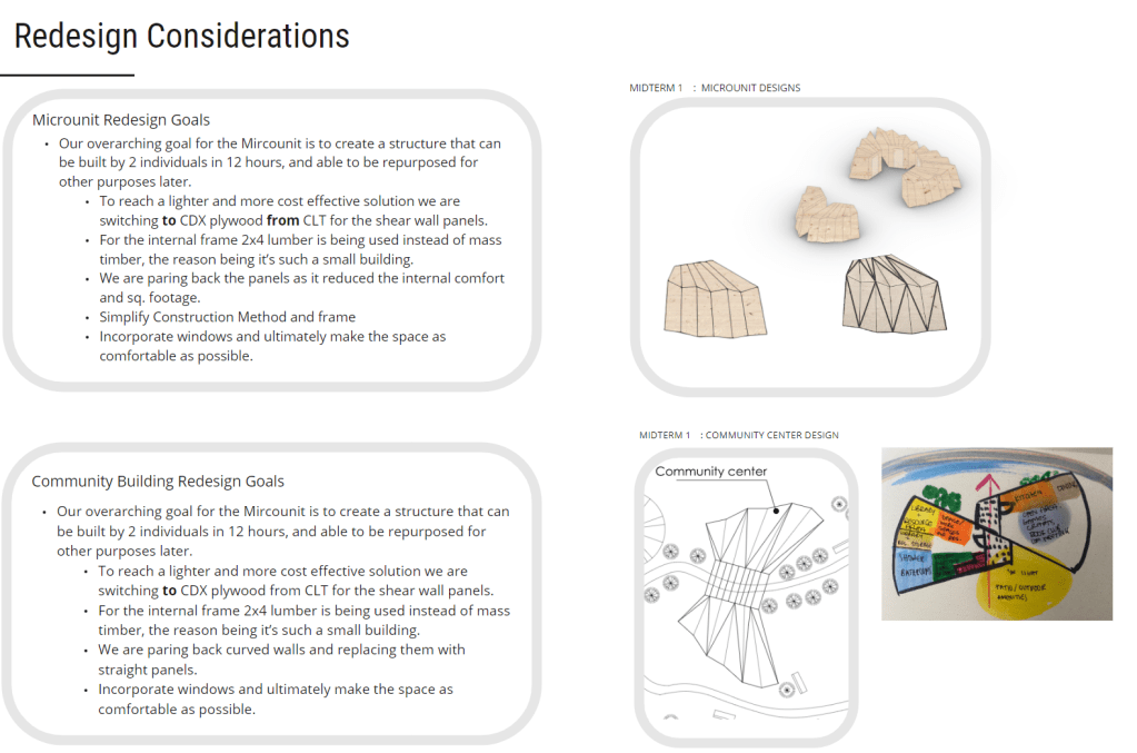 For the second iteration, the project team focused more on the development of the community building and on further developing the micro-unit. The redesign considerations focused on enhancing the user-experience and incorporating lessons learned from trauma-informed design studies.