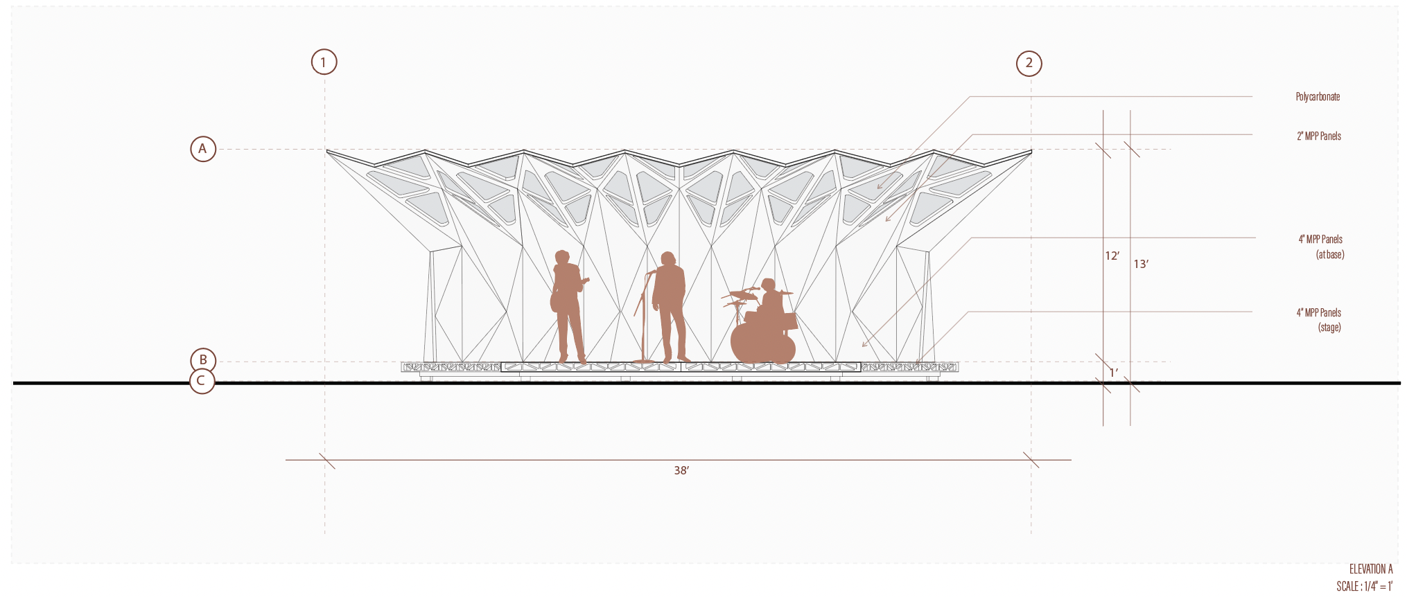 This midterm we were able to refine our design intentions and structural systems with the insights gained from the previous midterm. The folded plate structural system, as well as the overall presentation design, received positive reviews. There were several aspects of the project that were touched on for further refinement.