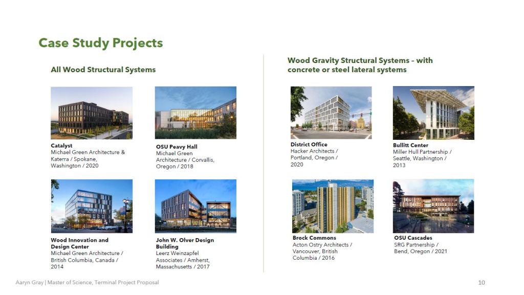 The utilization of and advances in mass timber over the last decade have changed our perceptions of construction materials and building today. As mass timber buildings are rising in interest to the architectural design profession, the Building Industry as a whole is taking the initiative to further understand and develop new and more efficient solutions for designing with mass timber. Along with this continued innovation, the employment of mass timber in comparison to concrete and steel is often more sustainable. Building and construction account for 39% of the world’s CO2 Emissions (UNEP, 2019), and the use of timber instead of concrete and steel can reduce these emissions by 69% (Himes and Busby, 2020). Because of this, the utilization of mass timber is a path for reducing global warming potential.