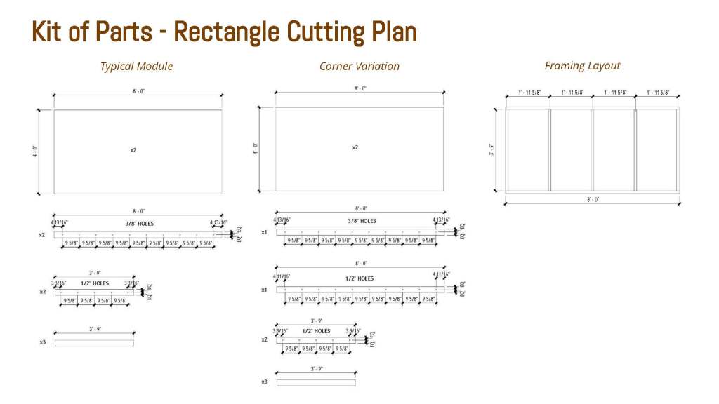 With the idea of simplicity in mind, we only have two SSP modules in our design. A 4×8 rectangle and a 4×8 right triangle; both are designed to have no material waste.