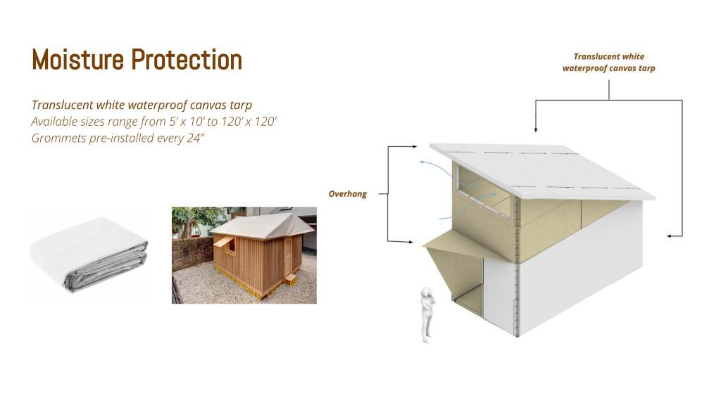 Our karamba analysis highlighted different stresses/strengths and any displacement associated with our design. Additionally, we proposed a translucent tarp for waterproofing and hemp wool insulation for thermal purposes.