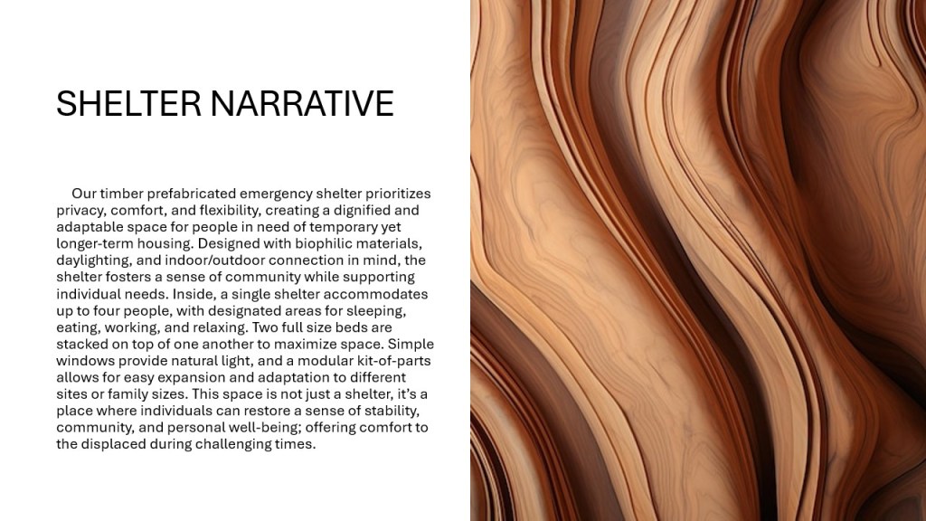 Group 4 Emergency Shelter Fall 2024 Share this: Click to share on X (Opens in new window) X Click to share on Facebook (Opens in new window) Facebook Like Loading... Related Leave a comment Cancel reply Δ